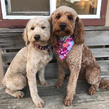 Ginger 38lbs, Red Goldendoodle F1b. Sisters from different litters.